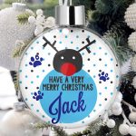 Personalised Pet Christmas Tree Bauble Decorations – In Your Face Deer Blue