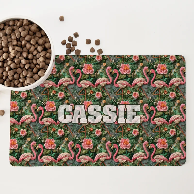 Personalised Non Slip Pet Bowl Mat – Don’t Chase The Flamingo