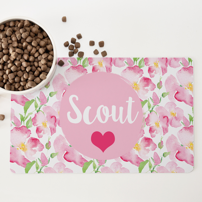 Personalised Non Slip Pet Bowl Mat – Roses